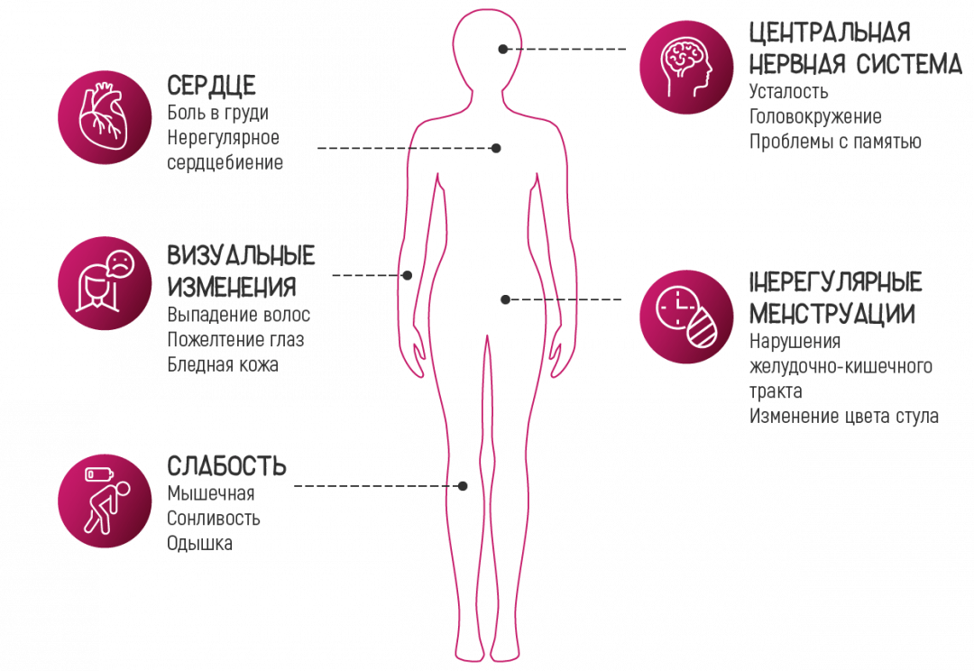 Низкий уровень железа в организме может привести к кислородному голоданию клеток, как следствие серьезные нарушения, влияющие на повседневную жизнь: